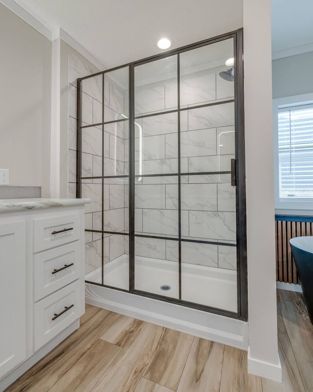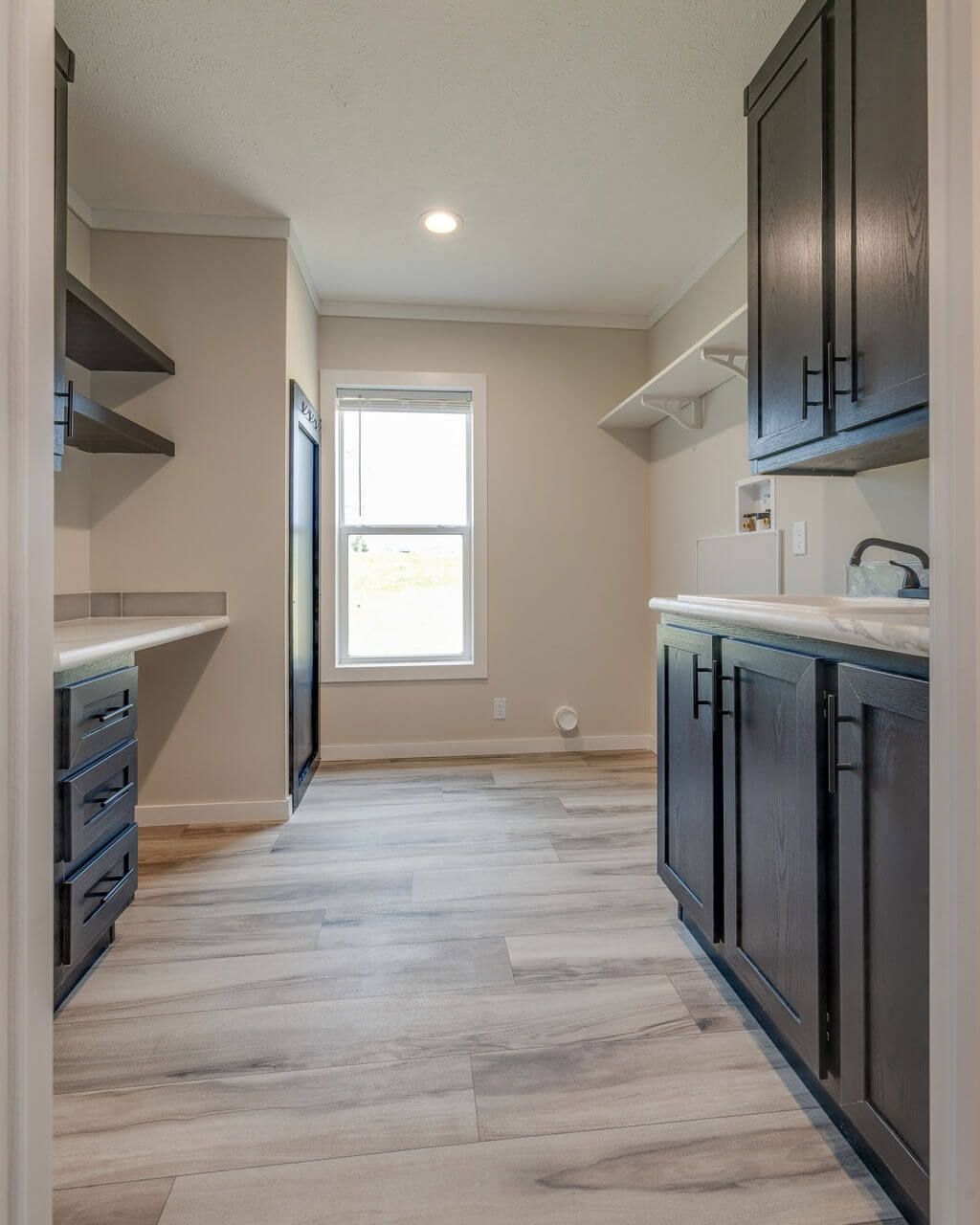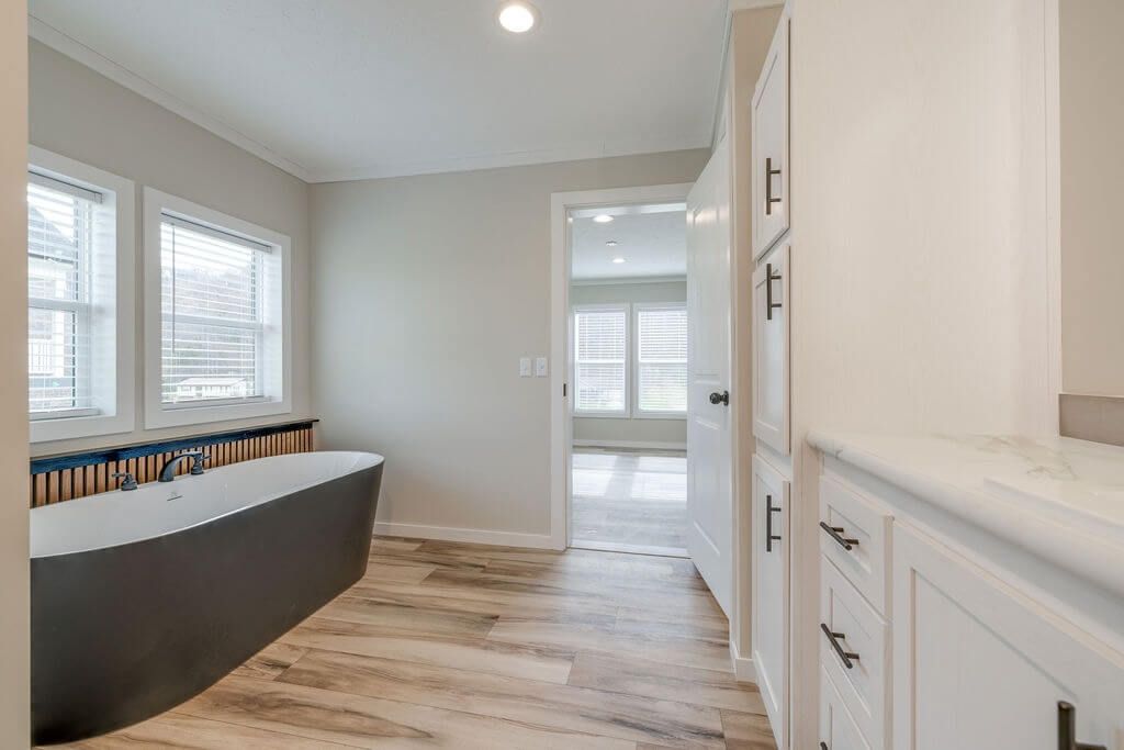 Retreat to the spacious primary suite featuring a spa-inspired bathroom complete with a freestanding soaking tub, premium mirrors, a black grid shower door, and sleek, modern finishes. Additional features include a large utility room with extra storage and workspace, painted drywall throughout, and upgraded finishes designed for long-term value.
